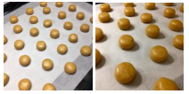 7. Una volta riposta la pallina sulla placca fate una leggera pressione in modo da formarle una base piatta che servirà per l’accoppiamento finale, mantenendo la cupoletta superiore. Distanziatele l’una dalle altre perché in cottura crescono e si allargano.