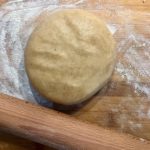 - Trascorso il tempo necessario del riposo riprendete il panetto e stendetelo su un piano leggermente infarinato in una sfoglia di circa 4 mm di altezza.