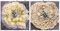 - In un mixer inserite la farina, il sale, la cannella e il burro fatto a pezzettini. Azionatelo alla massima velocità per poco tempo, i due elementi si devono sabbiare e non appiccicare (potete fare questa operazione anche a mano lavorandoli con la punta delle dita molto velocemente).