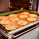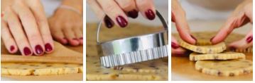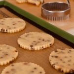 - Coppate i biscotti con un taglia biscotti di 6/7 cm di diametro (o quello che preferite) e adagiateli su una teglia microforata rivestita da apposito tappetino in silicone (altrimenti una comune teglia con carta forno).