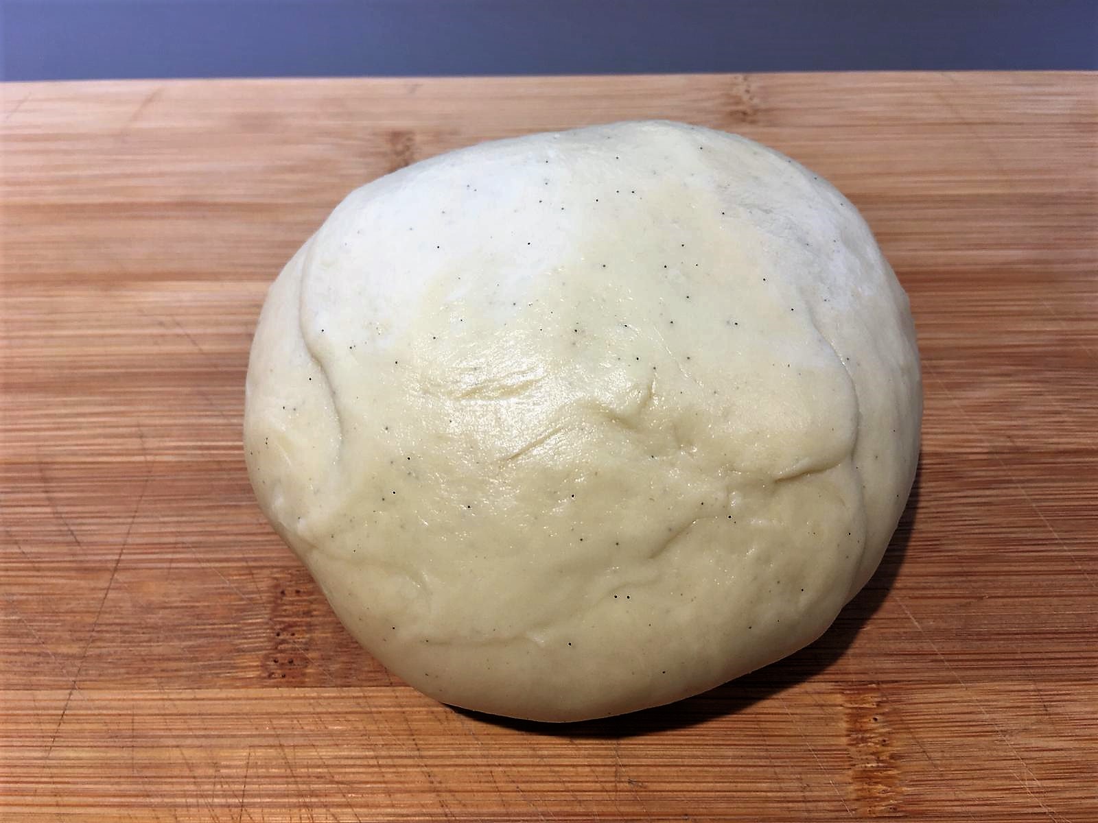- Trasferite il panetto su una spianatoia e lavoratelo a mano 3/4 minuti, formate un panetto e riponetelo in una ciotola grande coperta da pellicola trasparente.