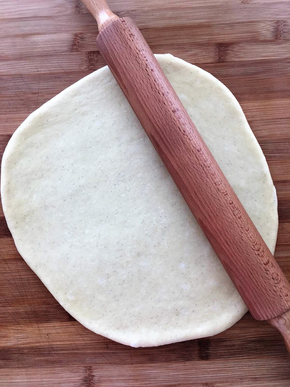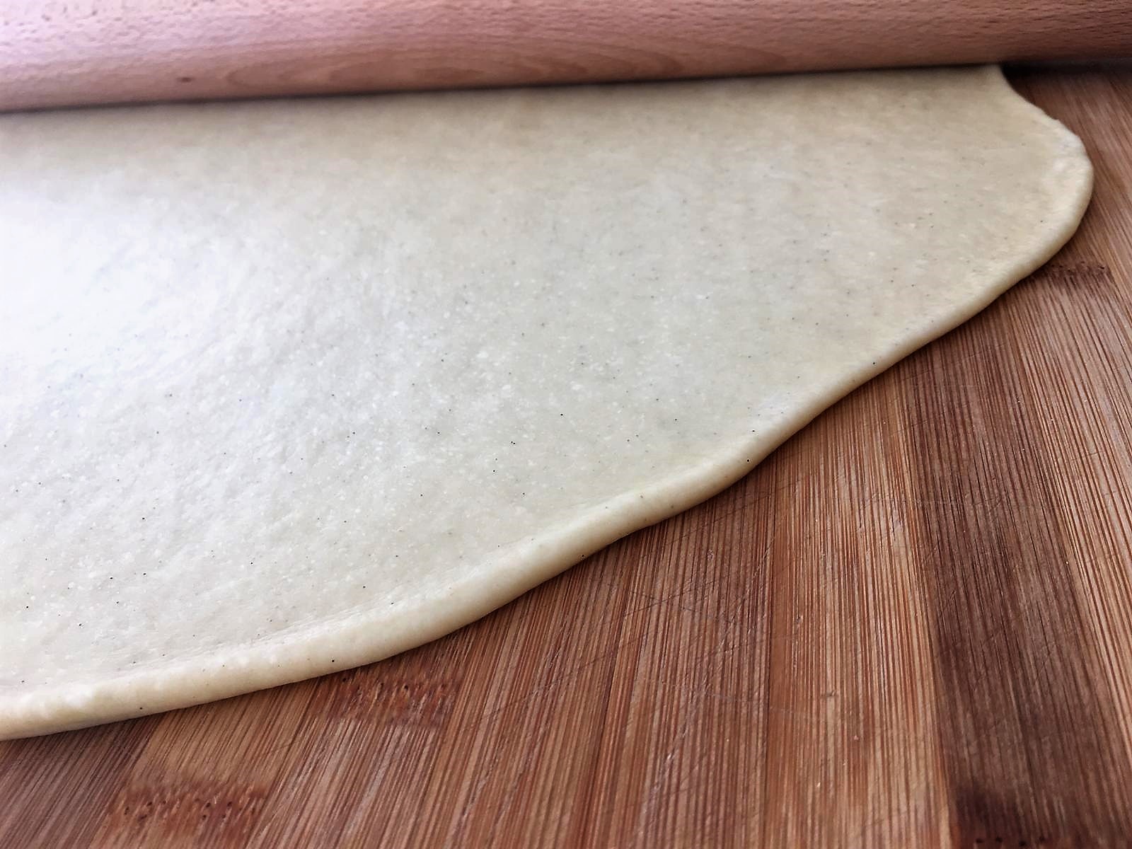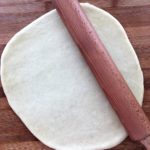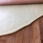 - Stendete l’impasto su una spianatoia di legno aiutandovi con un mattarello, cercate di formare una forma tondeggiante. Se l’impasto è ben lievitato la stenderete con molta facilità, altrimenti tenderà a ritirarsi. Dovrà avere uno spessore di circa 3-4 mm.