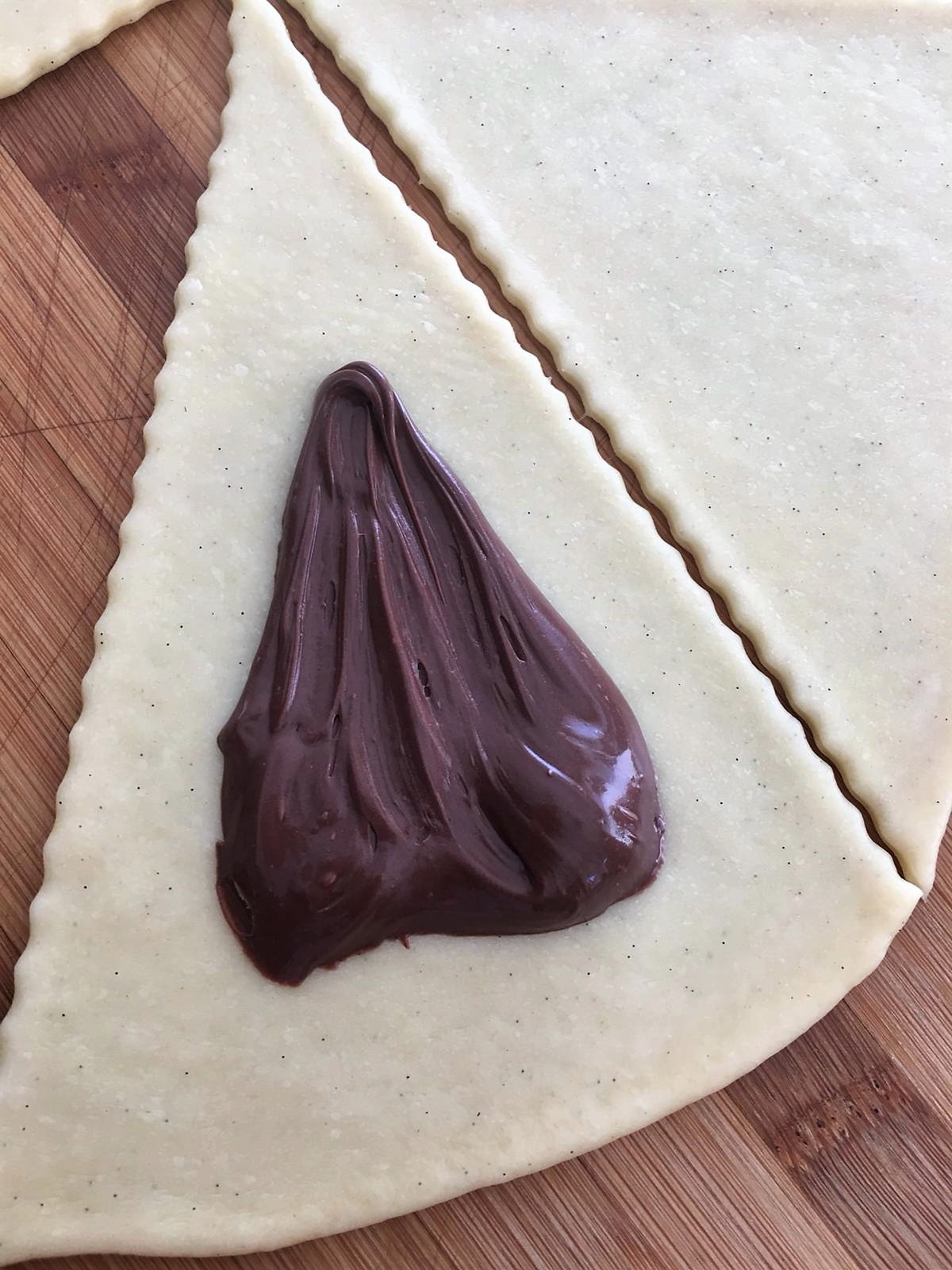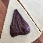 - Distribuite la nutella su ogni triangolino stando distanti qualche millimetro dai bordi altrimenti fuoriuscirà.