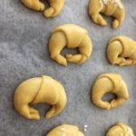 - A questo punto sbattete il tuorlo con poco latte e spennellate la superfice di ciascun cornetto, potete aggiungere della granella di zucchero.