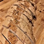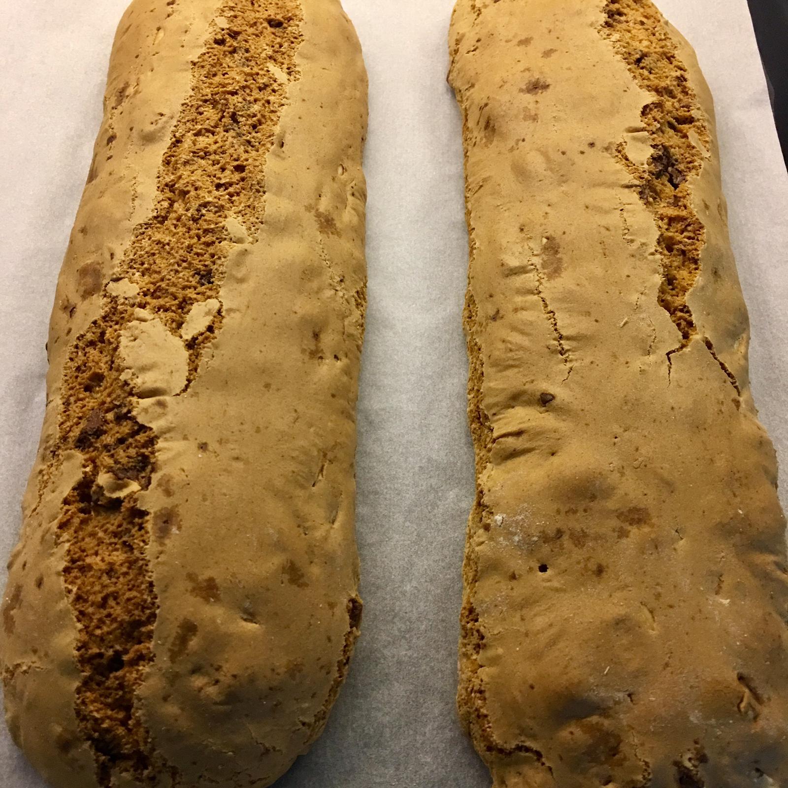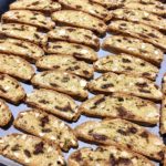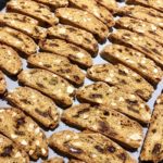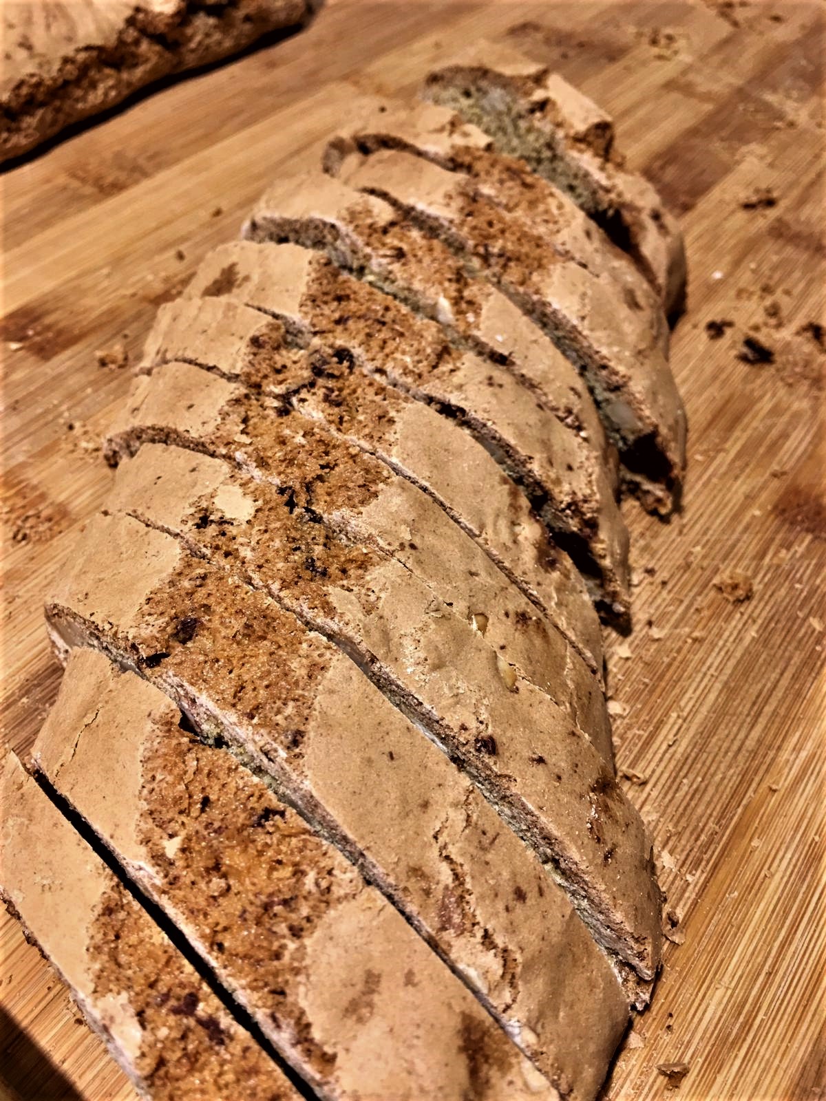 6. Con un coltello seghettato tagliate il biscotto con la classica forma del cantuccio, diagonalmente.