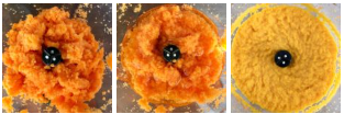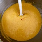 - Nel frattempo che la planetaria lavora passate al mixer più volte le carote in modo che risultino tritate molto finemente. Aggiungete l’0lio e proseguite a frullare per un paio di minuti fino a che non si ottiene una cremina di carote chiara e liscia.
