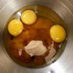 - Nel boccale della planetaria montate con le fruste (oppure con delle fruste elettriche) lo zucchero con le uova e il pizzico di sale per 8/10 minuti fio a che non diventano gonfie, spumose e chiare.