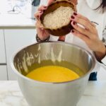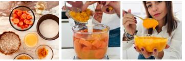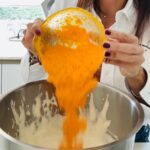 - Una volta che uova e zucchero sono ben montati aggiungete la purea ottenuta in precedenza omogenizzate il tutto a bassa velocità.