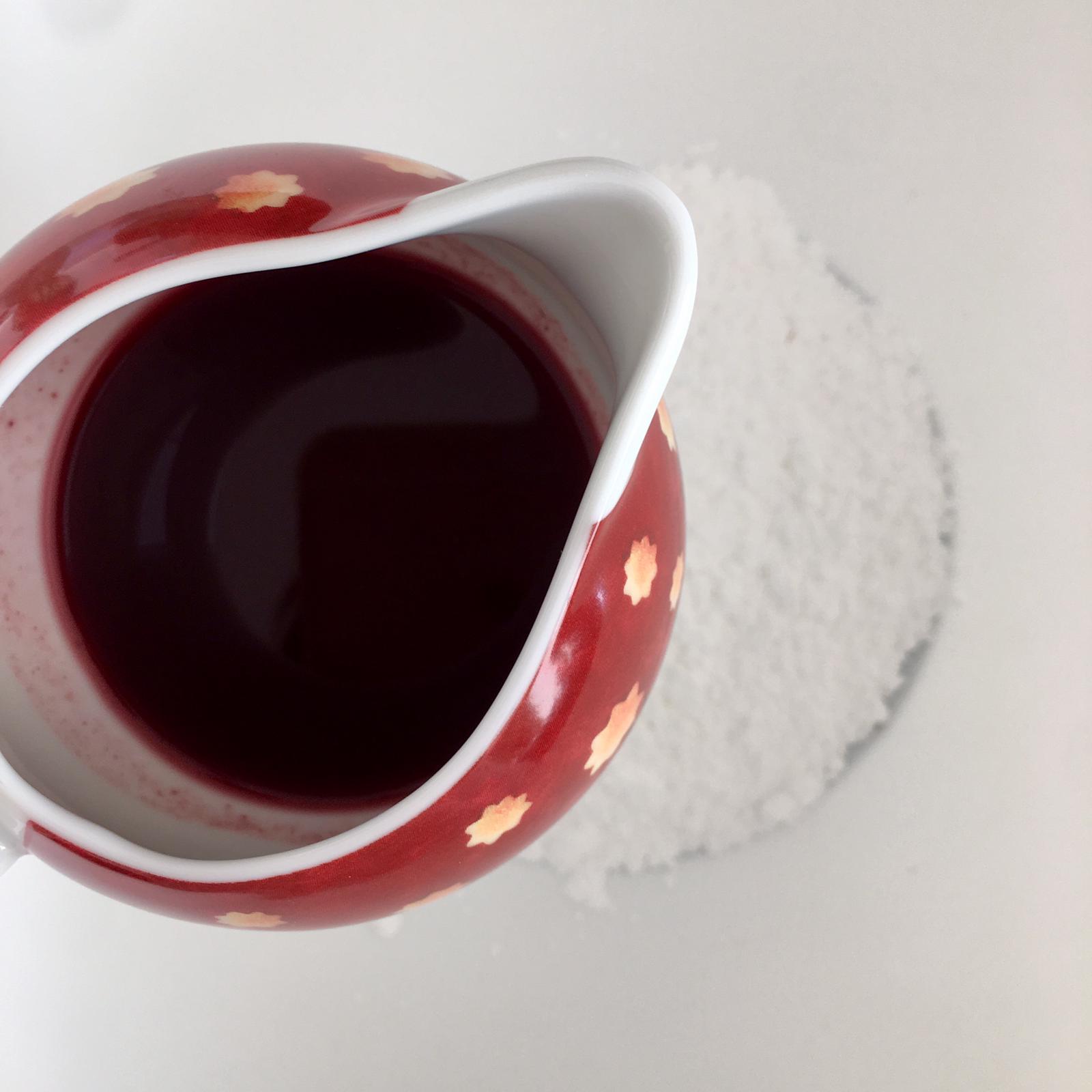Io ho voluto fare anche una leggera glassa decorativa, sempre con il succo ai frutti rossi e goji mescolato semplicemente a dello zucchero a velo.