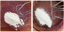 - Se volete aggiungete 3 cucchiaini di colorante rosso per avere un impasto finale più roseo (in caso contrario sarà più tendente al viola).