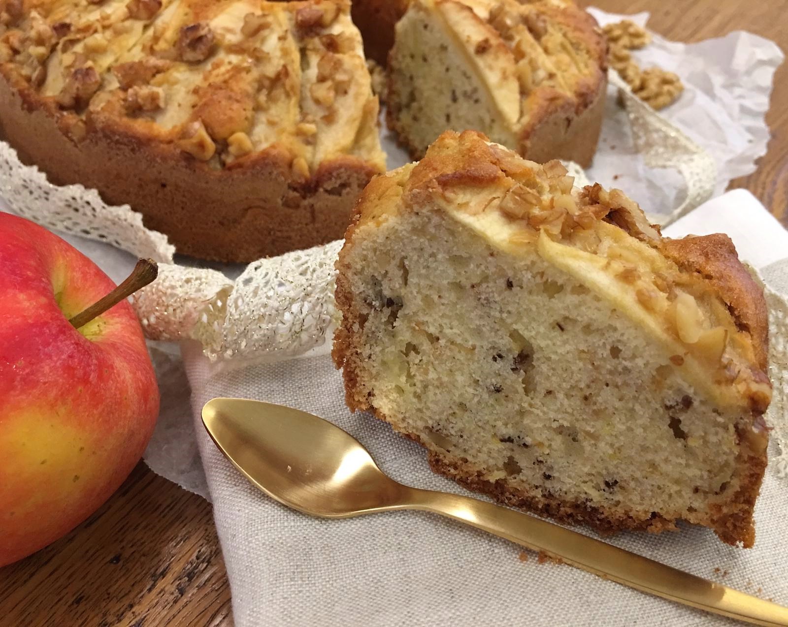 Esistono mille tipi di varianti alla torta di mele, durante il periodo invernale ne faccio davvero parecchie e questo è l’abbinamento che più amo, l’incontro delle mele con le noci la definirei una coccola golosa che più golosa non c’è, la morbidezza della mela che incontra la croccantezza della noce in un impasto soffice e umido che le unisce perfettamente. Il profumo che pervaderà casa verso fine cottura vi farà venire subito l’acquolina in bocca non vedendo l’ora di sfornarla per poterla assaggiare.