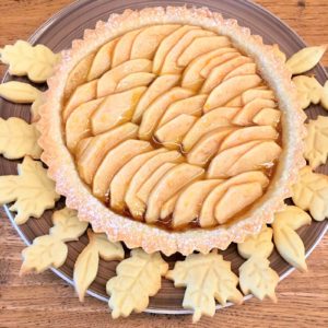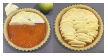 - Disponete le fettine di mela a piacere, a raggiera, verticalmente ecc ma riempiendo bene l’intera crostata.