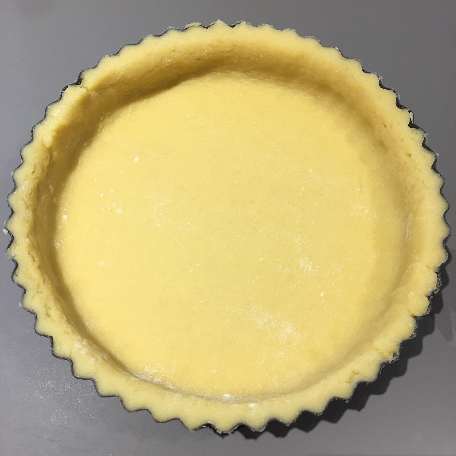 - Prendete la frolla dopo le due ore di riposo e con l’aiuto di un mattarello e della farina per evitare che si attacchi ad esso stendetela ottenendo uno spessore di circa 4/5 mm. Imburrate ed infarinate uno stampo da crostata da 24 cm, (io l’ho fatta da 20 perché volevo ricavare anche qualche biscotto) meglio se con base amovibile, e rivestitela con la frolla, eliminate gli eccessi con il mattarello e bucherellatela con i rebbi di una forchetta.