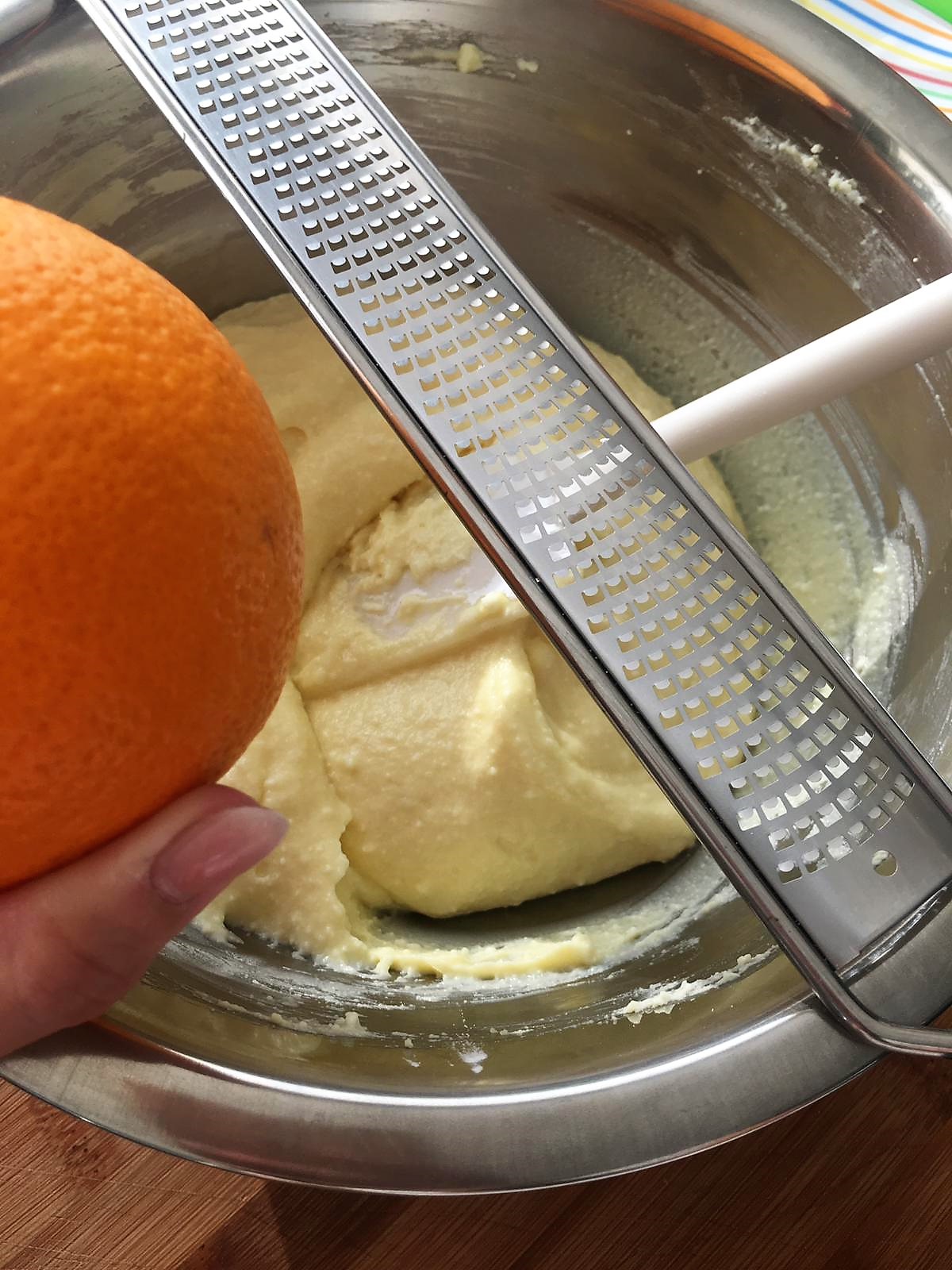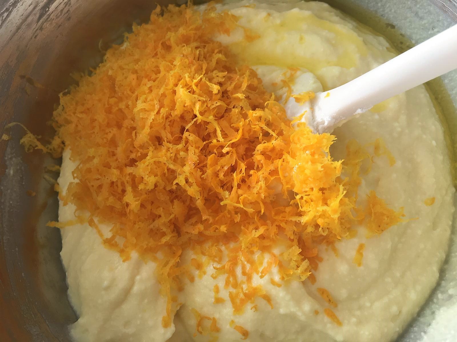 Nell’impasto di ricotta ho aggiunto la scorza di un’arancia, ce ne sono già di profumatissime in commercio nonostante faccia ancora parecchio caldo. Avrete così un aroma di agrumi buonissimo che si diffonderà per tutta casa.