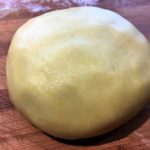 - Dividete il panetto in due parti, stendetene uno con l’aiuto di un mattarello. La sfoglia deve essere di circa 5mm.