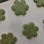Ovviamente nell’impasto per i frollini ci va una piccolissima quantità che già rende il biscotto di un verde davvero stupendo. Io ho utilizzato la mia frolla-amica che utilizzo spessisimo per le mie preparazioni, fatta con soli tuorli invece dell’uovo intero perché volevo una consistenza più soda e friabile.