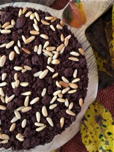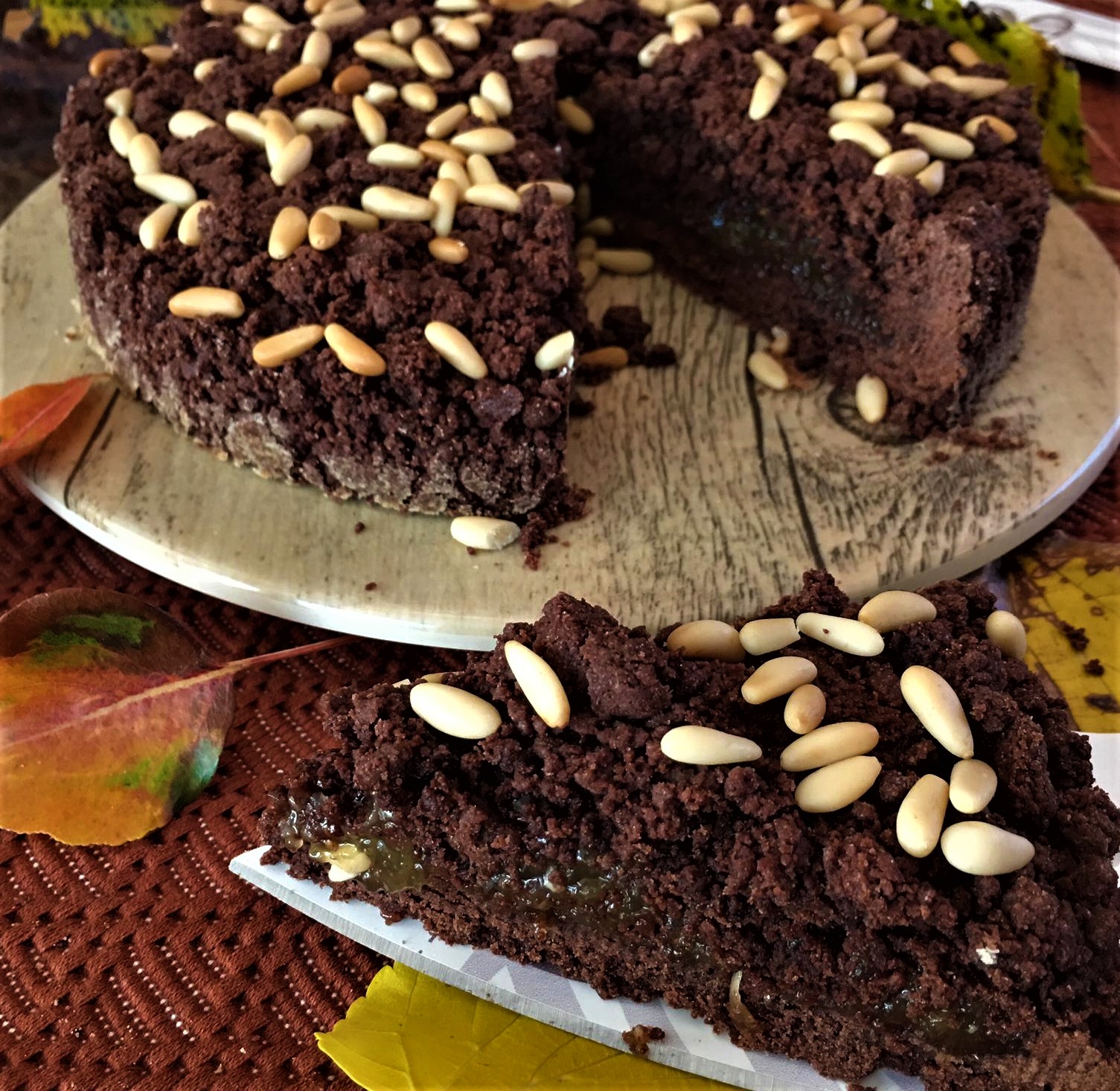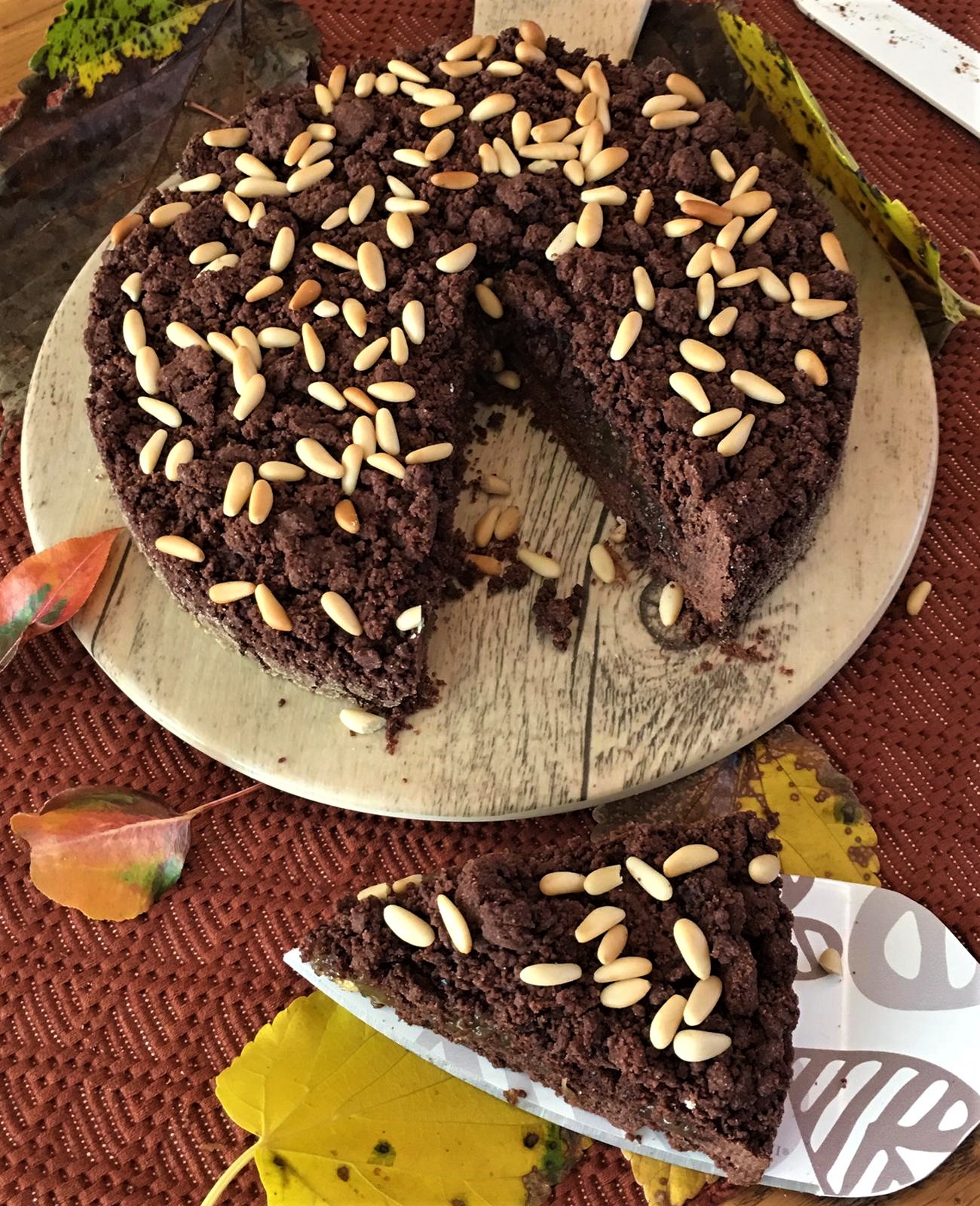 • Ed ecco un dolce che sprigiona tutti i sapori che l’autunno regala, quel dolce che ci fa pensare proprio alla stagione delle foglie che cadono, ai bellissimi colori che regala la natura, al freddo del mattino e al tiepido sole che riscalda nel pomeriggio, alle giornate corte che si avvicinano e alla voglia di arrivare a casa la sera e godersi le cose semplici come, appunto, un’avvolgente fetta di torta che scalda anima e corpo. E quando questa torta si chiama sbrisolona al cacao con marmellata di fichi e pinoli non può essere che subito autunno!