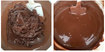 - Fatelo raffreddare utilizzando un coltello, sollevatelo e fatelo colare di tanto in tanto in modo da stemperarlo perfettamente, in questo modo lo avrete sempre bello lucido e più facile all’uso per quando lo dovrete spennellare nello stampo.