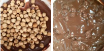 - Infine unite alla crema le nocciole intere e giratele bene per amalgamarle al cioccolato.