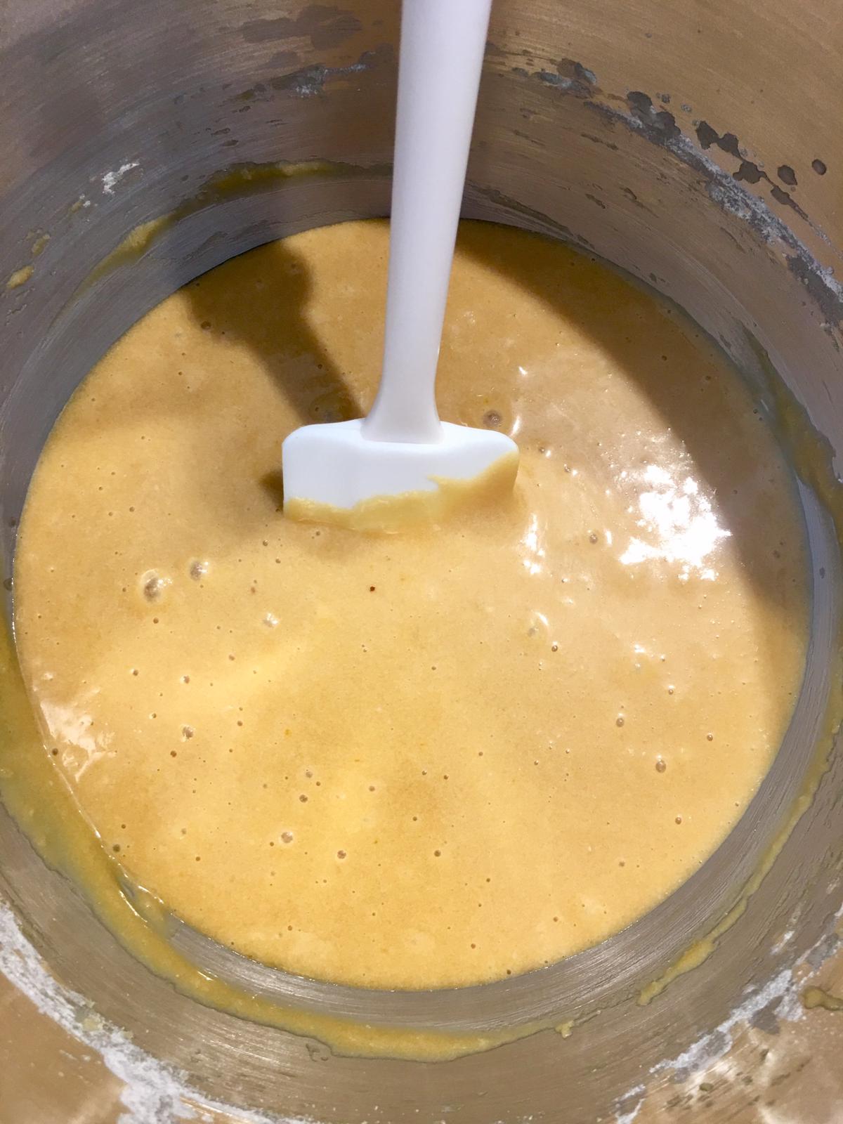 2. In una grande ciotola oppure nella planetaria versate le uova e lo zucchero e mescolatele per qualche minuto, aggiungete poi a filo l’olio e il latte alternandoli.