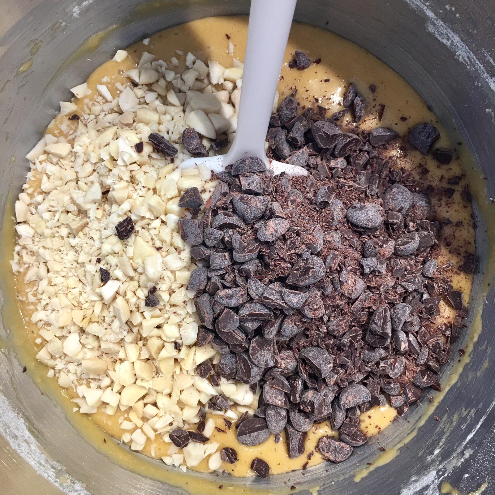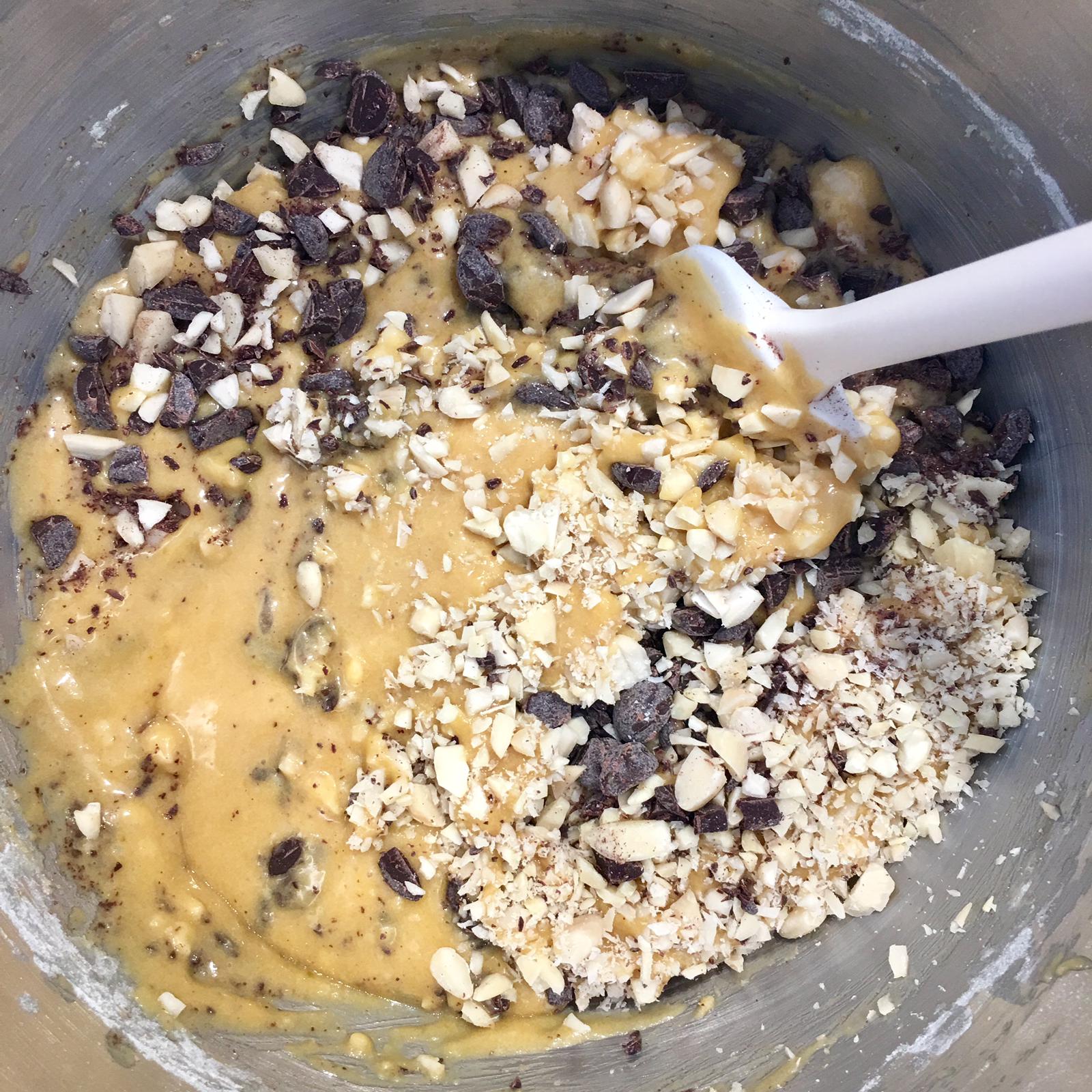 4. Inserite le mandorle e il cioccolato tritati amalgamando in maniera omogena il tutto.