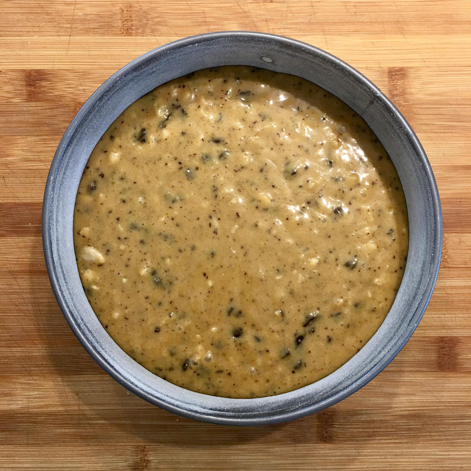 5. Trasferite l’impasto in una tortiera a cerniera di 20 cm imburrata ed infarinata (anche 22 va bene).