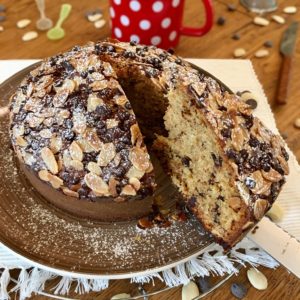 Una torta morbida e umida che incontra la croccantezza dei pezzetti di mandorle e di cioccolato al suo interno, un connubio magico che renderà questo dolce unico per il suo gusto deciso e per la sua bontà, vi stupirà e sono certa che la riproporrete più volte nel corso dell’intera stagione fredda.