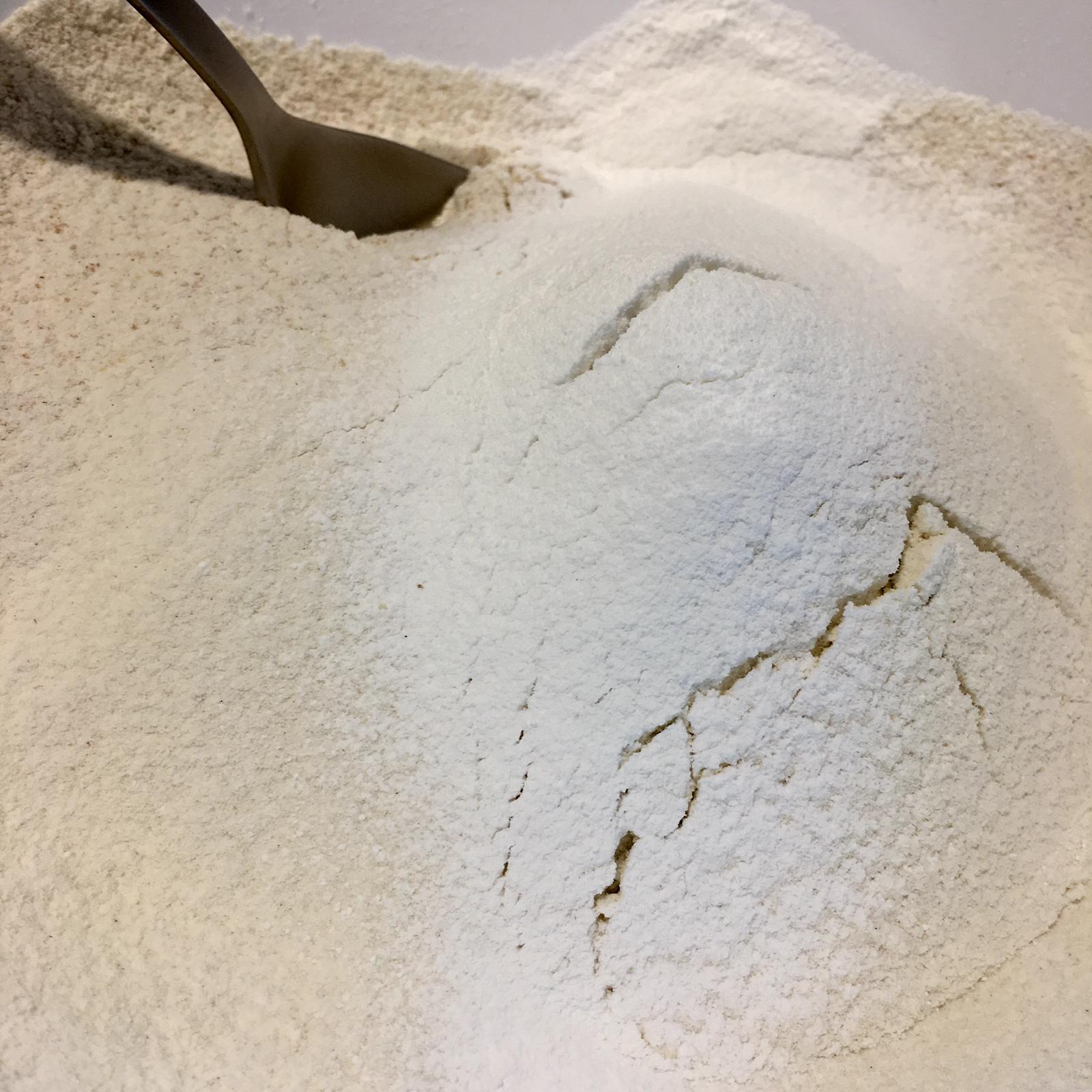 3. Setacciate e mischiate le farine e il lievito, aggiungetele poi un cucchiaio per volta nell’impasto continuando a far lavorare le fruste a bassa velocità.