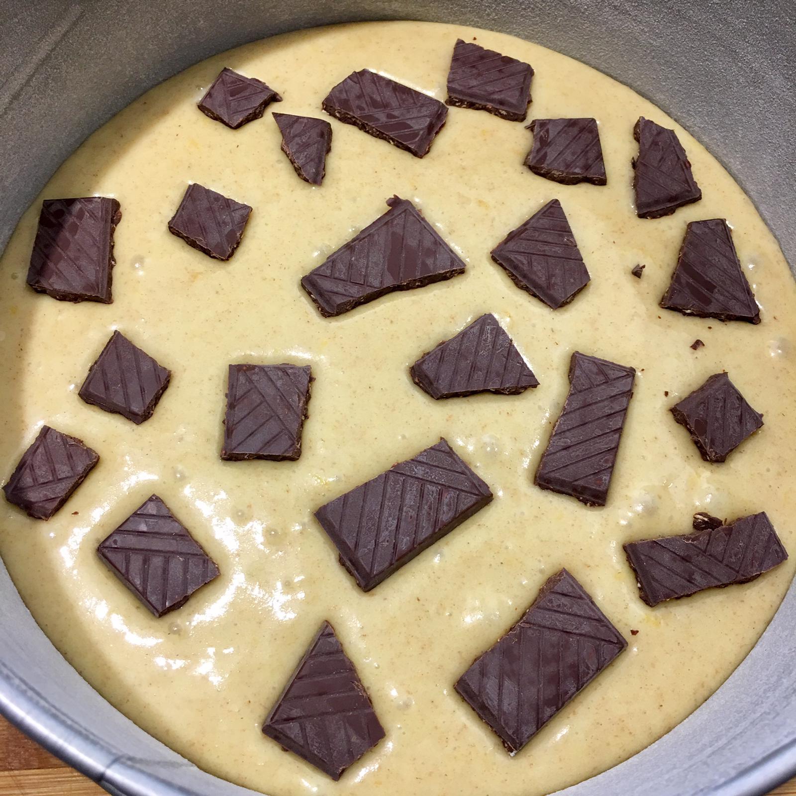 5. Coprite con il restante impasto e spezzetateci sopra gli altri 100 gr di cioccolato.