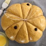 11. Sfornatela e con molta attenzione e delicatezza tagliate con delle forbicine lo spago partendo dal centro e rimuovendo i nodini. Capovolgete la zucca e sfilate un filo per volta. Così facendo il filo si sfila dall’interno senza rompere la brioche, cosa che accadrebbe se l’operazione viene fatta al contrario. Spolverate il centro con dello zucchero a velo e per farla somigliare perfettamente alla zucca unite centralmente un piccolo bastoncino di legno, quello della cannella o il picciolo di una pera.