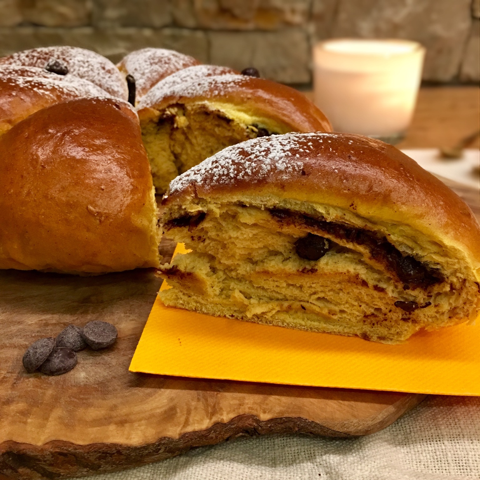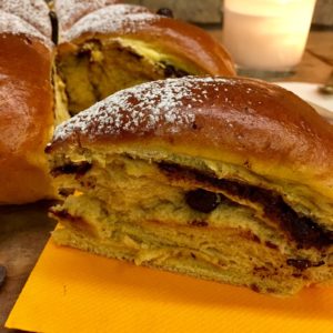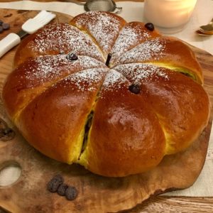 • La farcia interna la potete decidere a piacere, ottima è anche con uvetta e canditi oppure spalmata con crema al burro e amaretti sbriciolati. L’importante è che il “ripieno” sia, appunto, rinchiuso all’interno dell’impasto.