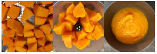 2. Mentre il lievitino riposa cuocete la zucca. Per ottenere una purea di 150 grammi occorre circa 350 gr di zucca senza la buccia. Cuocetela a vapore e poi passatela nel mixer per ottenere una crema morbida e liscia. Mettetela a parte e fatela raffreddare.
