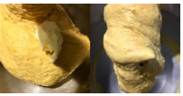 5. Unite un cucchiaino per volta di burro all’impasto e solo dopo che verrà totalmente assorbito aggiungete l’altro e così via fino alla fine. Ci vorranno circa altri 10 minuti. Fate lavorare il gancio per altri 5 minuti poi toccate l’impasto ottenuto, se alle dita si appiccica un po’ aggiungete circa 3/4 cucchiaini di farina, l’impasto dovrà risultare elastico e non appiccicoso.